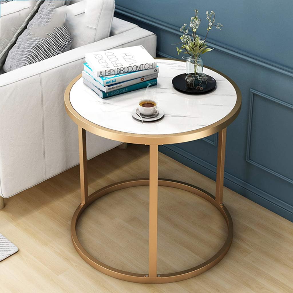 Masuta cafea rotunda aspect marmura alb-auriu 40x40x45 cm – Model premium modern, eleganta minimalista